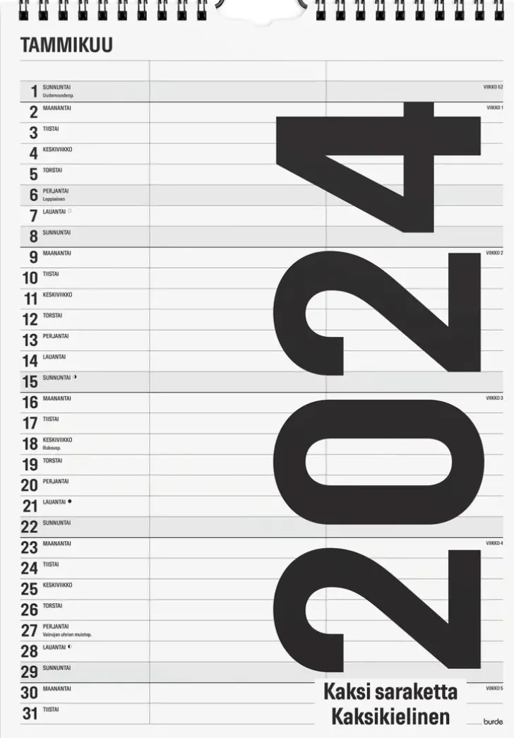 Burde Seinakalenteri 2024 Black And White 2 Saraketta