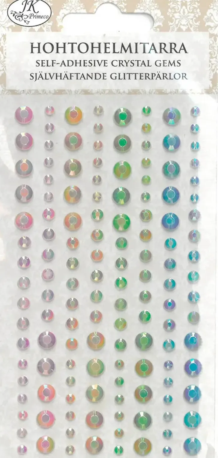 Hohtohelmitarrat Askarteluun Ja Koristeluun. Pakkaus Sisältää Yhden Arkin Hohtavia Tarrahelmiä Kolmessa Eri Koossa Ja Neljässä Eri Värissä. Helmien Koot Ovat 3Mm, 4Mm Ja 6Mm.