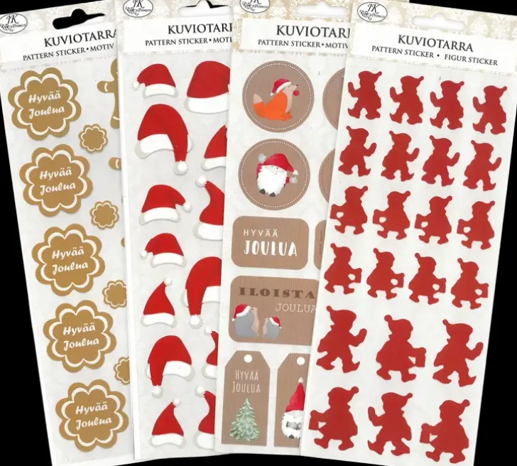 Kuviotarrat Askarteluun Ja Koristeluun. Pakkaus Sisältää Yhden Arkin Erilaisia Paperisia Kuviotarroja Glitterillä. Arkin Koko On N. 23Cm X 10Cm.
