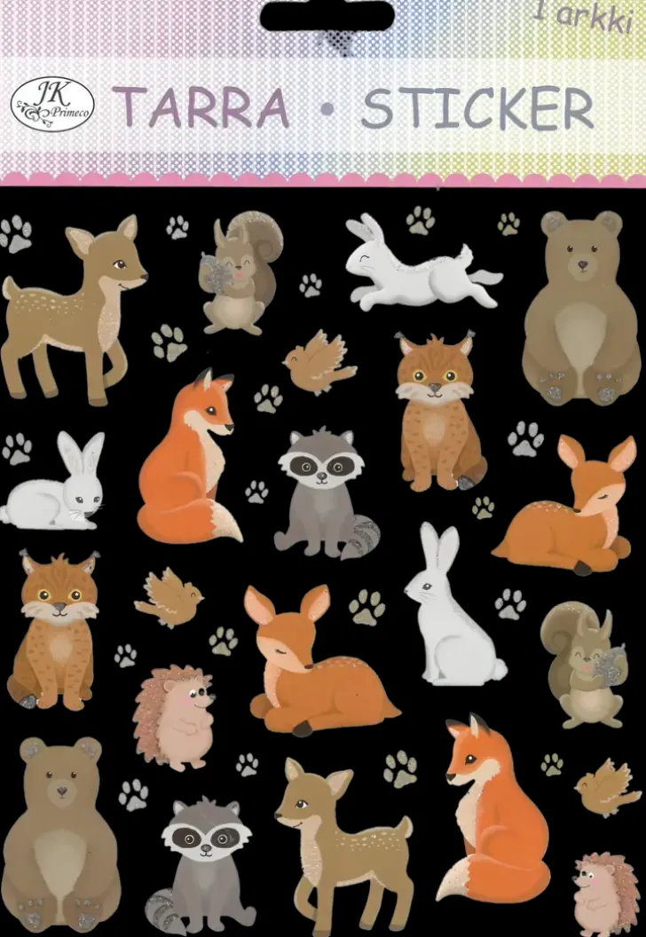 Tarra-Arkki Askarteluun Ja Koristeluun. Pakkaus Sisältää Yhden Arkin Erilaisia Paperisia Tarroja Glitterillä. Arkin Koko On N. 15Cm X 17Cm.