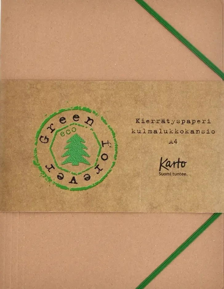 Kierrätetystä Materiaalista Tehty Kulmalukkokansio Vihreällä Kuminauhalla