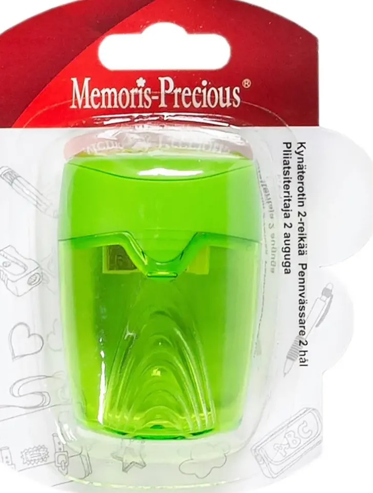 Kynäteroitin, Jossa Säiliö Ja Kaksi Reikää. Värivaihtoehtoina Oranssi, Sininen Ja Vihreä.