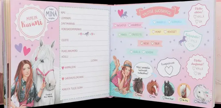Miss Melody Ystäväkirja Sisältää Monta Sivua Ystävien Sekä Perheesi Täytettäväksi! Sivuilla On Myös Muuta Hevosaiheista Puuhaa!