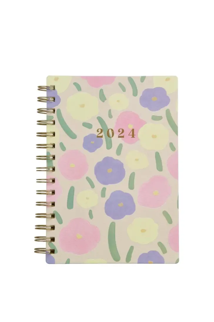 Kierresidottu Vuosikalenteri Kauniilla Kukkakansilla. Koko: A5. Kielisyys: Suomi, Ruotsi. 192 Sivua.