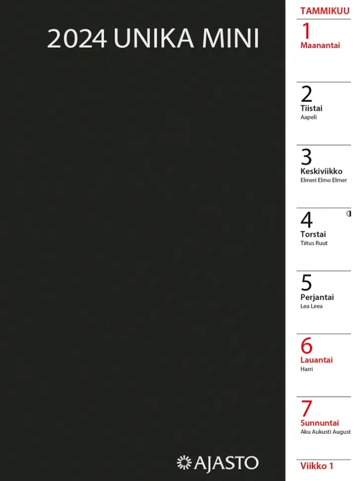 Be the first to review “Taskukalenteri Unika Mini, Musta” Peruuta vastaus