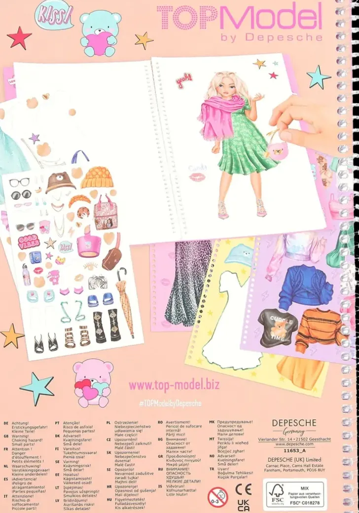 Pue Topmodel Dress Me Up Tarrakirjan Sivuilla Esiintyville Malleille Trendikkäät Asukokonaisuudet Värittäen Ja Mukana Tulevia Kauniita Tarroja Käyttäen.
