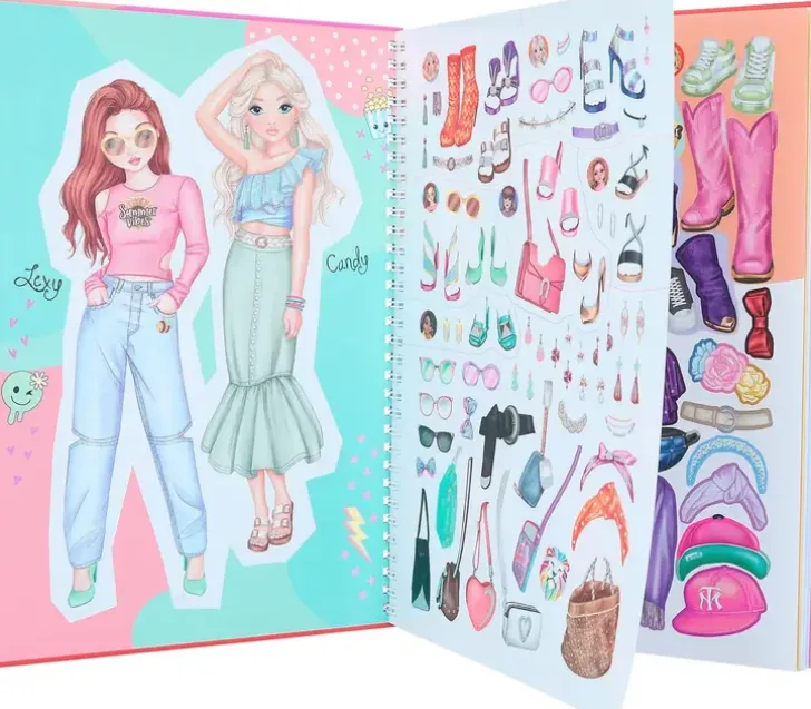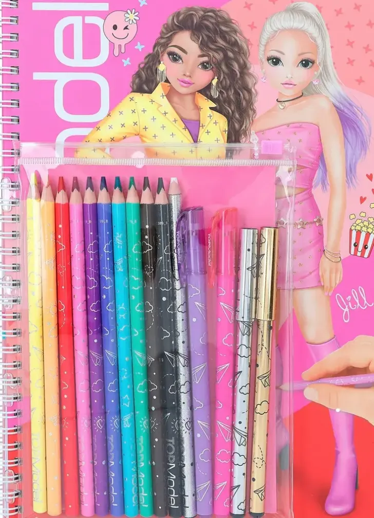 Tässä Upeassa Suunnittelukirjassa On Monta Sivua, Joihin Värittää Trendikkäitä Asukokonaisuuksia! Ja Mikä Parasta, Samassa Paketissa Mukana Tarroja Ja Värityskynät (11 Puuvärikynää, 2 Ohutkärkistä Tussia Ja 2 Geelikynää) – Siis Kaikki, Mitä Piirtämiseen Ja Suunnitteluun Tarvitset!