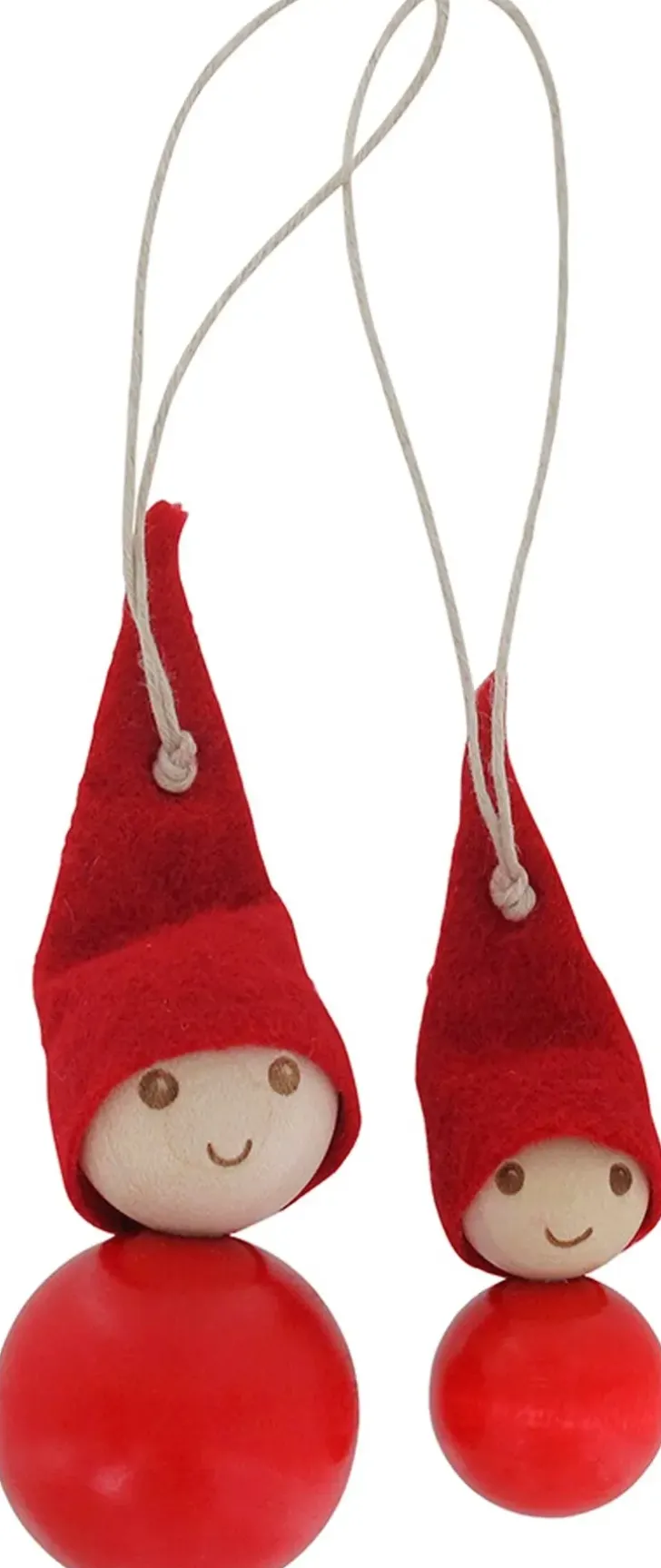 Aarikan Ripustettavat Tontut. Settiin Kuuluu Kaksi Erikokoista Tonttua Joiden Pituudet Ovat 16 Cm Ja 11 Cm. Valmistettu Käsityönä Suomessa.