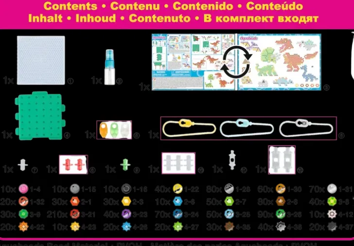 Aquabeads Dinosaurus -Setti Sisältää Yli 1500 Helmeä 24 Eri Väriä, Sommittelualustan, Suihkuttimen, Helmet, Mallit, Ripustinosia Sekä Koristelevyn. Valmiit Dinosaurukset Voi Laittaa Esille Koristelevylle Tai Ripustinosalla Avaimenperäksi.