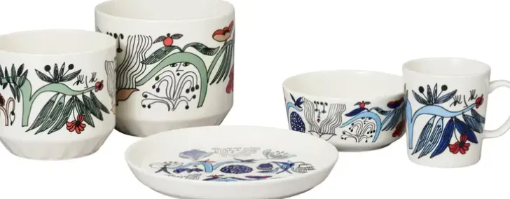 Taiteilija Armi Tevan Luoma Puutarhurit-Kuvio On Raikas Sinisävyinen Puutarha, Jossa Kasvien Lomasta Kurkistelevat Leikkimieliset Hahmot. Puutarhurit 19Cm Lautanen Sopii Kooltaan Niin Aamiaiselle Kuin Alku- Ja Välipaloille. Yhdistele Puutarhurit-Koristetta Muiden Arabian Rakastettujen Kuvioiden Kanssa.