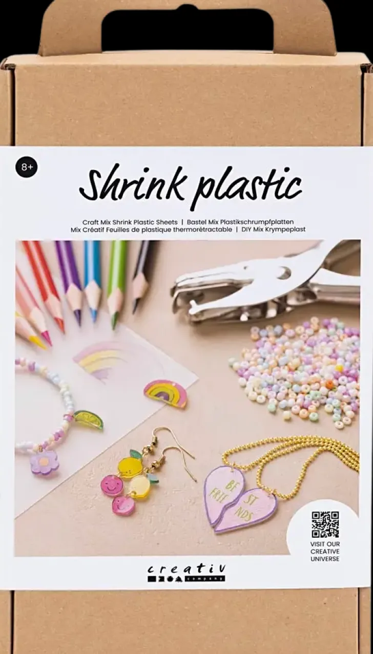 Tämän Setin Avulla Voit Tehdä Koruja Kutistemuoviarkeista. Setti Sisältää Kaikki Tarvittavat Materiaalit Ja Ohjeet.≪Br≫≪Br≫Jos Haluat Oppia Tekemään Omia Koruja Kutistemuoviarkeista, Craft Miximme On Täydellinen Ratkaisu. Alkuun Päästäksesi Se Sisältää Kaiken Tarvittavan. Kutistemuoviarkkeja On Helppo Värittää – Ja On Hauskaa Seurata, Kuinka Kuvat Kutistuvat Uunissa. Tuloksena On Ainutlaatuisia Ja Värikkäitä Koruriipuksia. Löydät Kaikki Ohjeet Pakkauksen Takaa – Tai Skannaa Qr-Koodi Ja Pääset Suoraan Luovaan Maailmaamme.≪Br≫≪Br≫Sisältää: Kutistemuoviarkit, Värikynät, Helmet, Korvakoukut, Ketjut, Lävistyspihdit