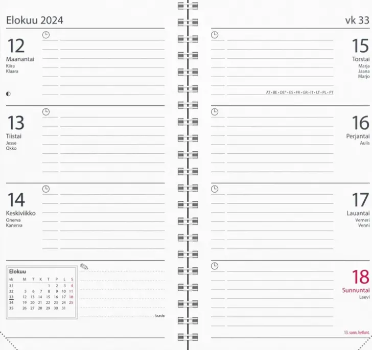 Kalenterin Aukeamalla Yksi Viikko Ja Kuluvan Kuukauden Kalenteritaulukko. Kalenteri Sisältää Nimipäivät, Kansalliset Pyhäpäivät, Liputuspäivät, Kuun Vaiheet, Vuosisuunnitelmat Kuluvalle Ja Seuraavalle Vuodelle, Yleiset Pyhäpäivät Euroopassa, Kalendaariset Tiedot, Suomen Kartta, Välimatkataulukon Ja Erillisen Puhelinmuistion. Kalenteriosa: Vk 51 2023-Vk 1 2025. Suomenkielinen. Parikierresidottu. Fsc®. Koko: 83X158 Mm.