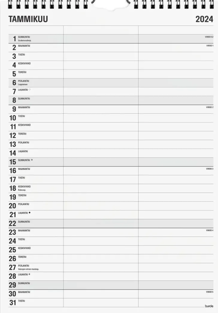 Burde Seinakalenteri 2024 Black And White 2 Saraketta