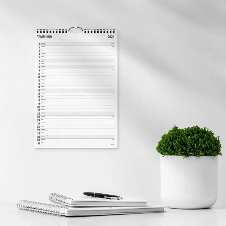 Perhekalenteri Pienemmälle Perheelle Tai Parille. Yksinkertainen Ja Tyylikäs Seinäkalenteri Joka Sopeutuu Joka Paikkaan. Kalenteri Sisältää Juhlapyhät, Liputuspäivät Ja Kuun Vaiheet. Kaksikielinen: Suomi/Ruotsi. Parikierresidottu. Fsc®.