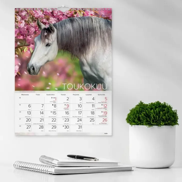 12 Kuvaa Eläinystävistämme. Kalenteri Sisältää Nimipäivät, Liputuspäivät, Kansalliset Pyhäpäivät Ja Kuun Vaiheet. Suomenkielinen. Parikierresidottu. Fsc®. Koko: 295X390 Mm.