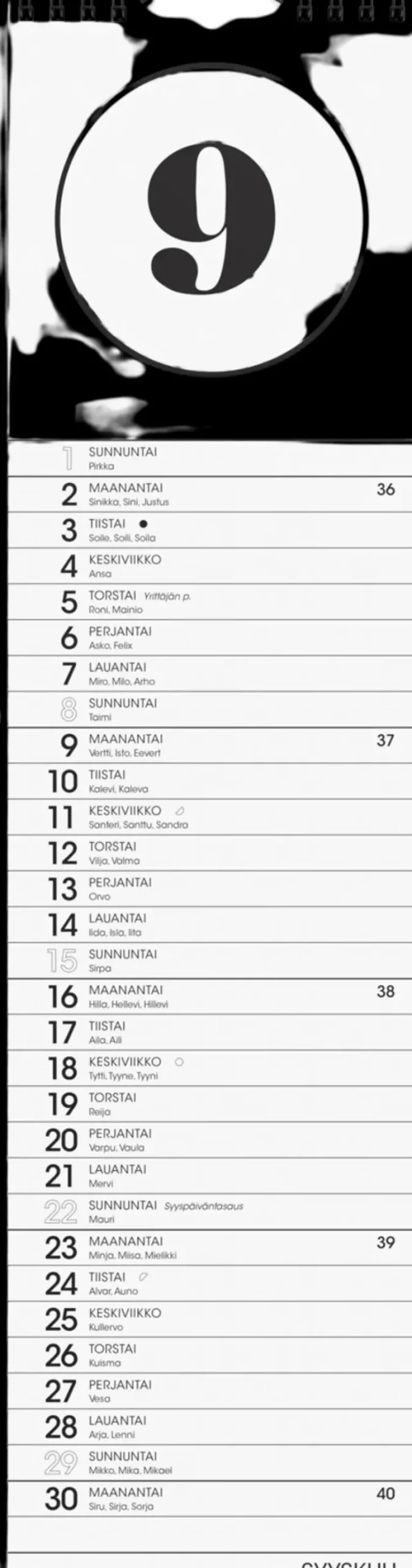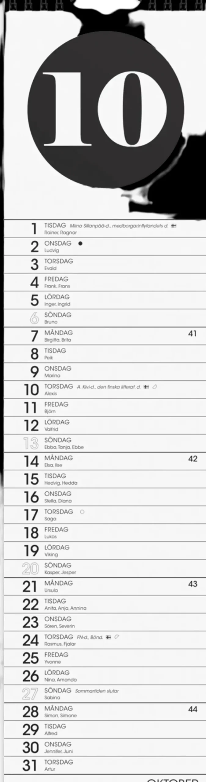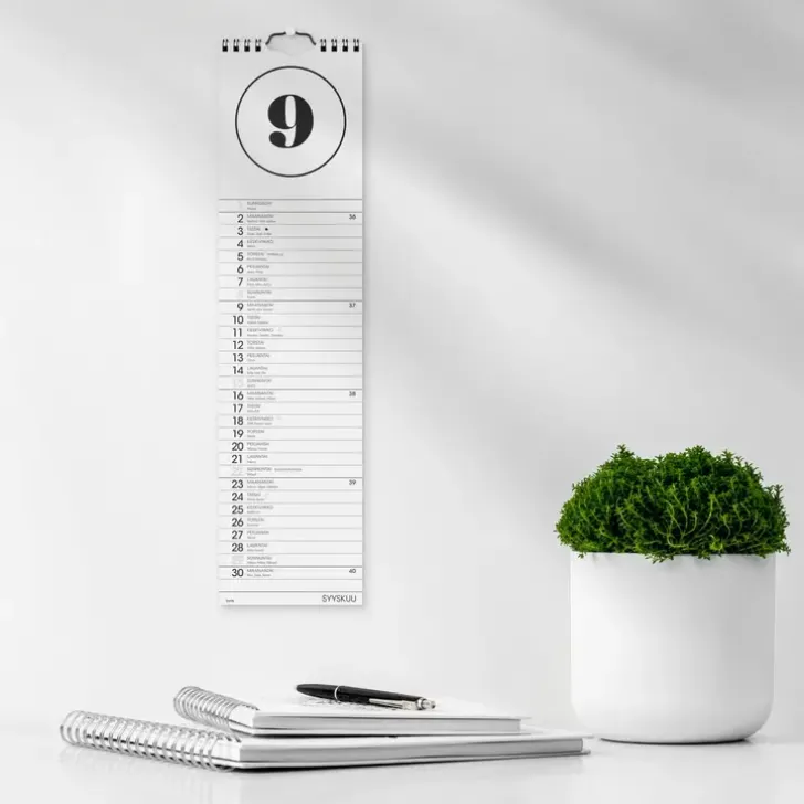 12 Sivua. Kalenteri Sisältää Nimipäivät, Juhlapyhät, Liputuspäivät Ja Kuun Vaiheet. Kaksikielinen: Suomi/Ruotsi. Parikierresidottu. Fsc®. Koko: 110X430 Mm