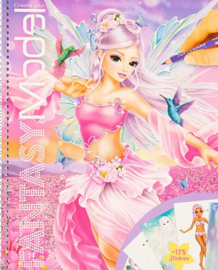 Uppoudu Topmodelin Fantasiamaailmaan, Anna Mielikuvitukselle Vapaat Kädet Ja Suunnittele Näyttäviä Asuja Fantasiaprinsessoille! Kirjassa Mukana Suunnittelusivujen Lisäksi Tarroja, Inspiraatiosivuja Ja Kohokuviosivu.