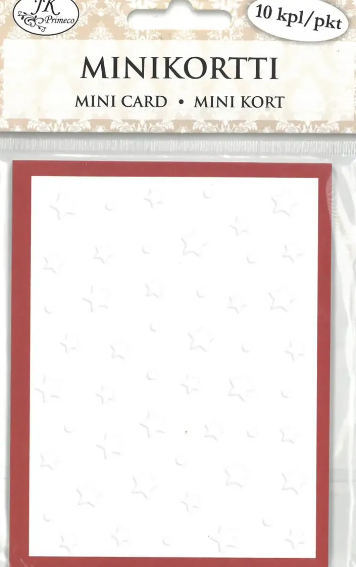 Minikortti Koristereunalla Askarteluun. Pakkaus Sisältää 10 Kappaletta Korttipohjia Koristereunalla Ja Kohokuviolla. Yhden Kortin Koko On N. 11Cm X 8,5Cm. Korttipohjan Vahvuus On 220G/M².
