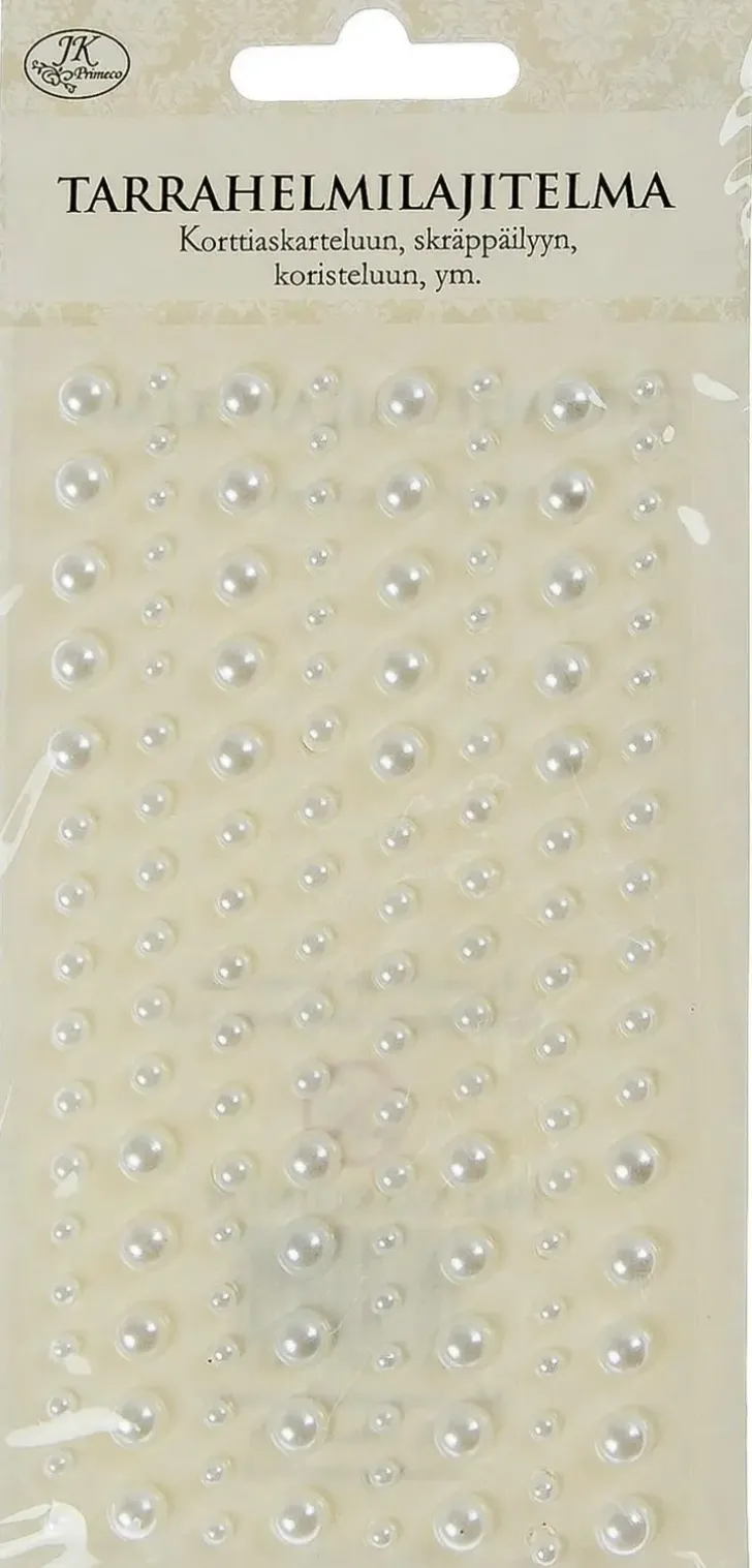 Pakkaus Sisältää Yhden Arkin Erikokoisia Valkoisia Tarrahelmiä. Sopii Korttiaskarteluun, Skräppäilyyn Ja Koristeluun.