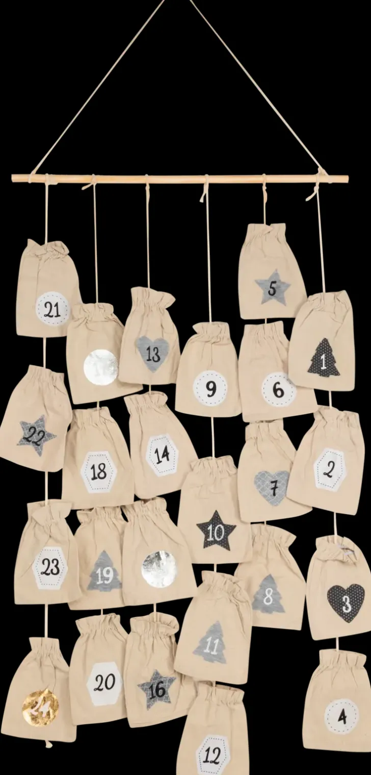 Kankainen Joulukalenteri, Jossa 24 Pussukkaa. Kalenterin Mitat: 65 X 110 Cm.