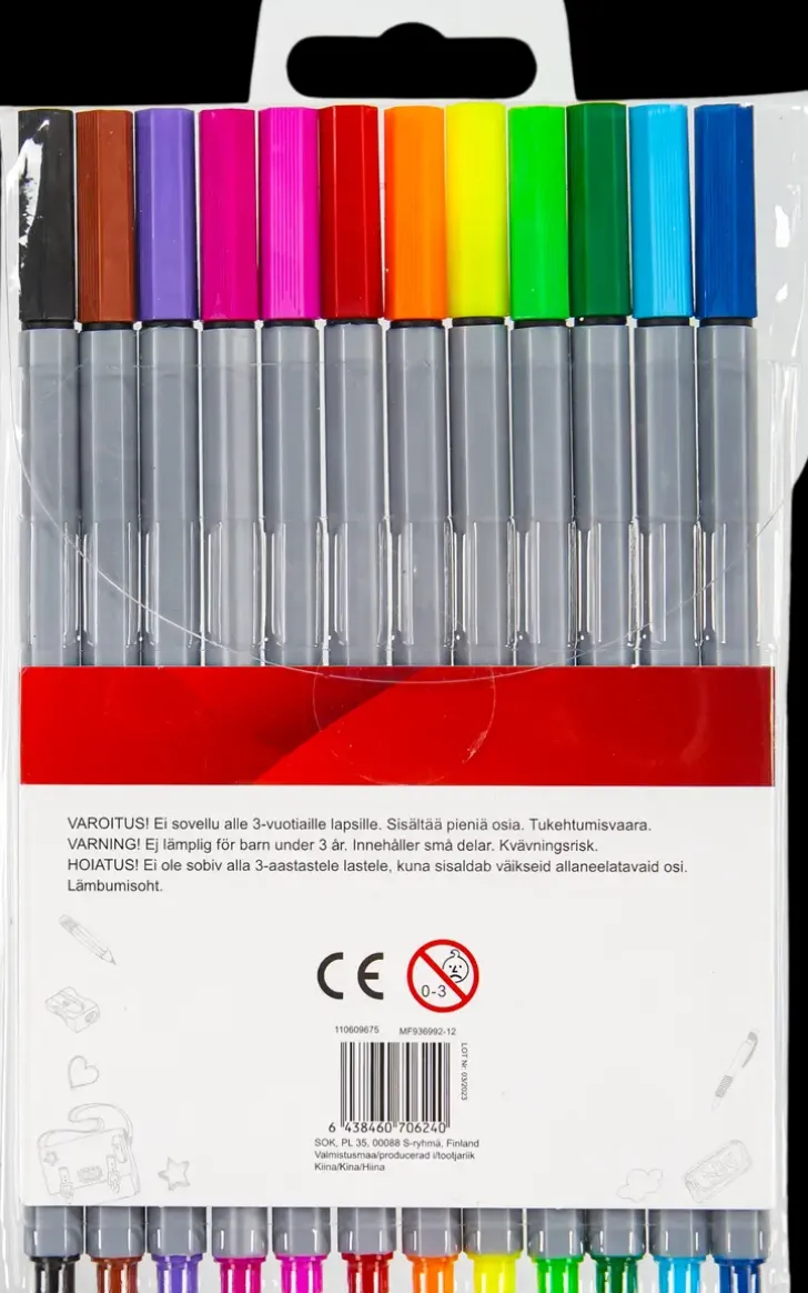 Kynäsetti, Jossa 12 Kpl Kuitukärkikyniä.