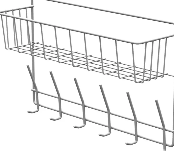 Eteiseen Tai Vaatehuoneeseen Sopiva Kori, Jossa 6 Kpl Koukkuja. Leveys 500 Mm, Syvyys 140 Mm, Korkeus 315 Mm. Väri Valkoinen. Sisältää Kiinnikkeet.