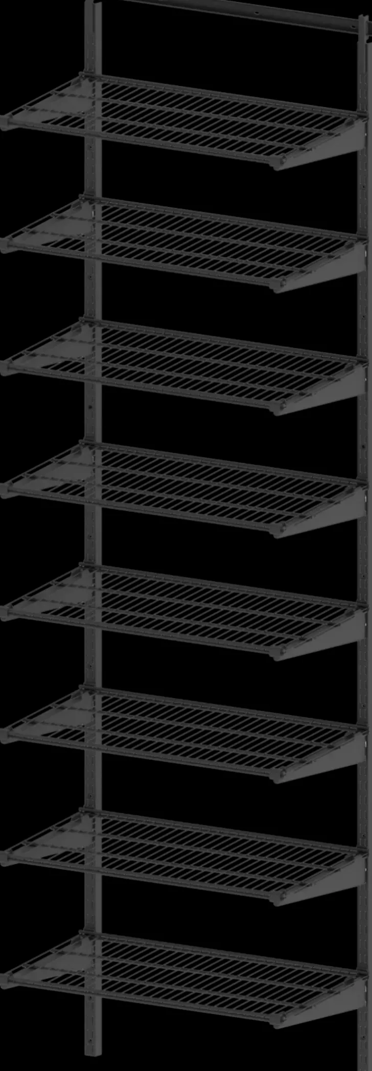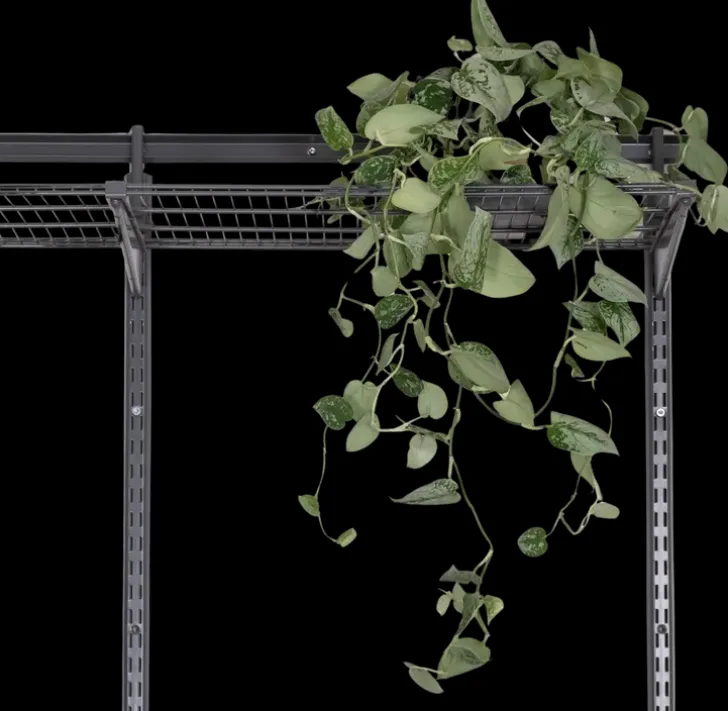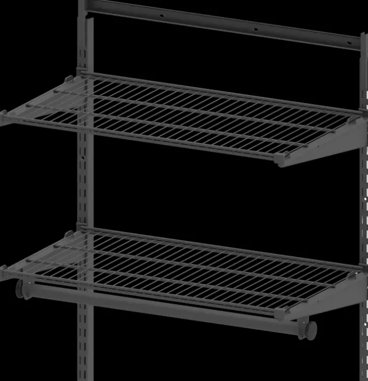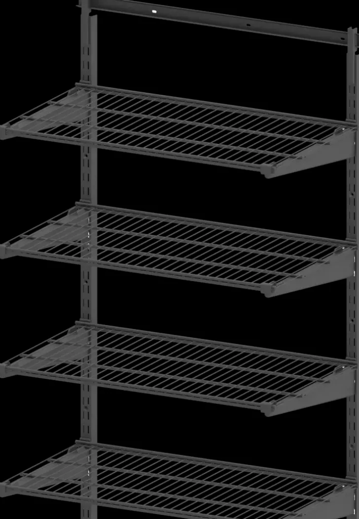 Seinään Kiskolla Tukevasti Kiinnitettävä Säilytysjärjestelmä On Helppo Asentaa. Väri Antrasiitti. Valmistettu Suomessa.