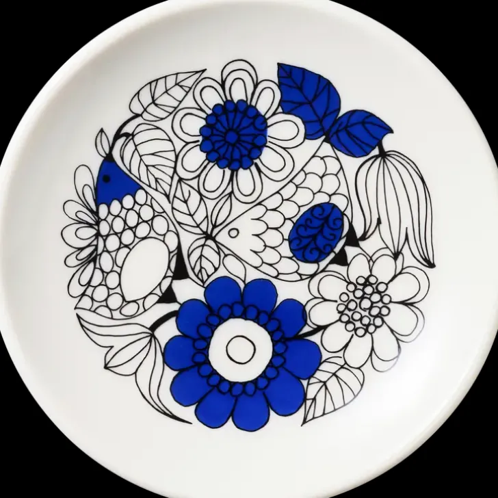 Sinisävyisen Pastoraali 10,5 Cm Lautasen Vehreässä Puutarhassa Piileskelee Pieniä Lintuja. Pieni Lautanen Sopii Välipaloille Tai Aluslautaseksi.