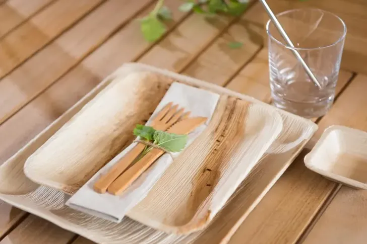 Tukeva Pudonneista Palmunlehdistä Valmistettu Kertakäyttölautanen. 100 % Luonnontuote, Biohajoava, Voidaan Hävittää Myös Polttamalla. Tyylikäs Vaihtoehto Muille Kertakäyttölautasille.