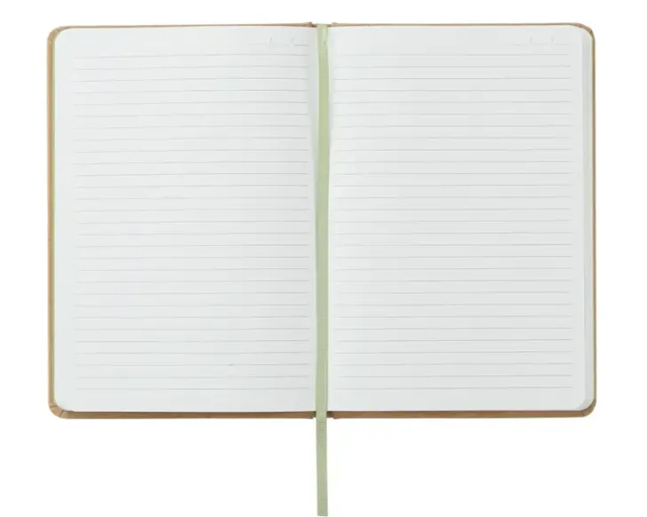 Kierrätetystä Paperista Valmistettu Muistikirja Kuminauhasuljennalla. A5-Kokoinen Muistikirja, Jossa 96 Viivoitettua Sivua. Kirjan Mitat: 14 X 22 X 1 Cm.