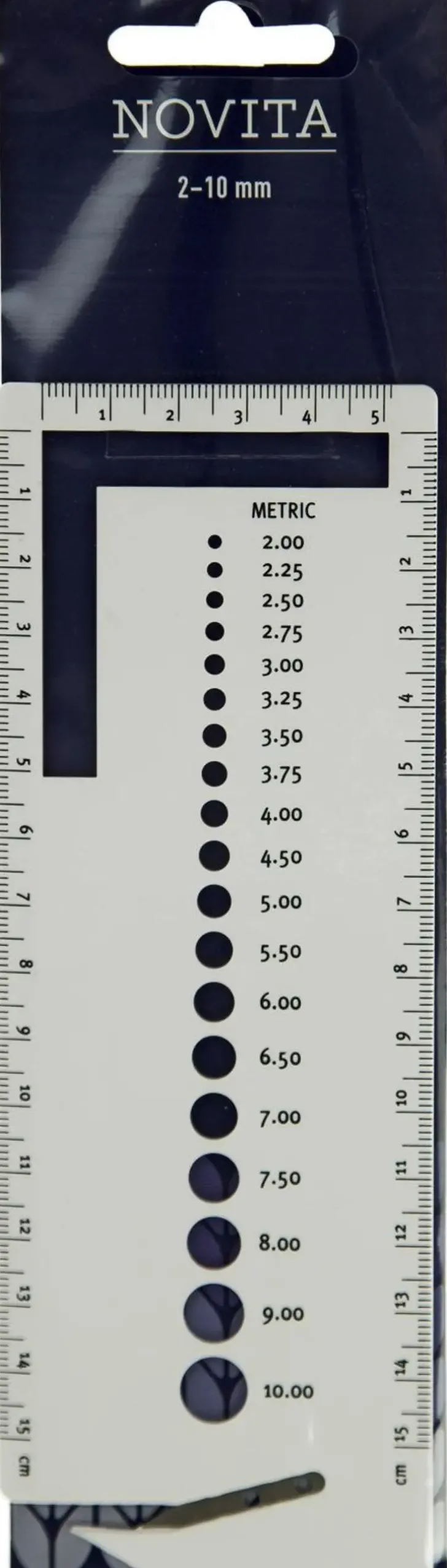 Novitan Puikkomittari On Tarpeellinen Apu Puikkokoon Määrittämisessä. Lisäksi Mittarissa On Kätevä Langan Katkaisija Ja Se Toimii Myös Viivottimena.
