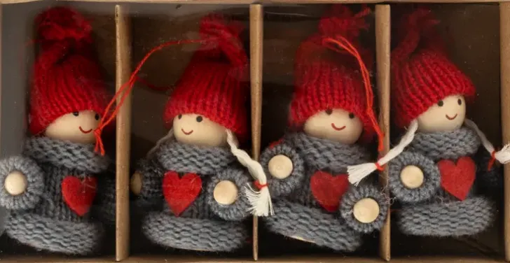 Ripustettava Tonttuhahmo. Pakkaus Sisältää 4 Hahmoa.