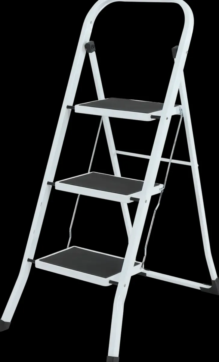 Tärkeä Apuri, Jonka Avulla Yletyt Esimerkiksi Keittiön Yläkaappeihin. Kokoontaitettavassa Jakkarassa On Kolme Porrasta.