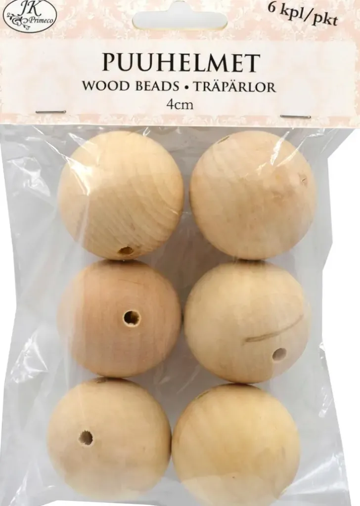 Puuhelmet Askarteluun Ja Koristeluun. Helmen Halkaisija 4Cm. Pakkauksessa 6Kpl