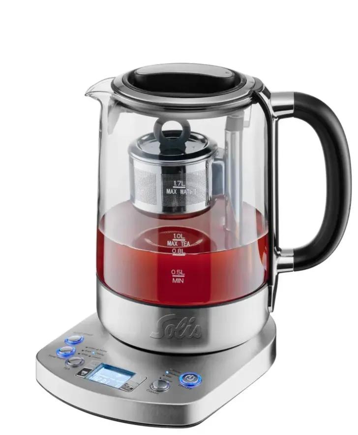 Solis Tea Kettle Automatic Teekeittimen Avulla Haudutat Täydellistä Teetä. Valittavanasi On Viisi Valmista Haudutusohjelmaa Eri Teelaatuja Varten Tai Voit Itse Asettaa Haudutusajan, Lämpötilan Ja Vahvuuden. Ajastustoiminto Varmistaa, Että Voit Heti Herättyäsi Nauttia Kupin Täydellistä Teetä Ja Lämpimänäpitotoiminto Säilyttää Halutun Lämpötilan Jopa 60 Minuuttia. Teesihti Laskee Alas Ja Nousee Ylös Automaattisesti Varmistaen Täydellisen Haudutuksen. Teräksinen Teesihti On Helppo Puhdistaa Ja Täyttää. Laitetta Voi Käyttää Myös Vedenkeittimenä, Jolloin Käyttökapasiteetti On 1,7 L Puhdistusta Helpottaa Irrotettava Ja Pestävä Kalkinsuodatin. Takuu 6 Vuotta.