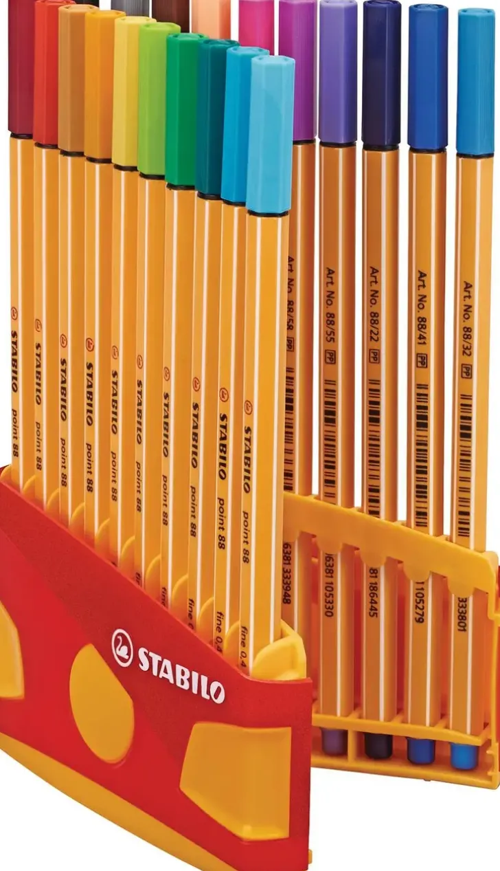 20 Kpl Stabilo Point 88-Kuitukärkikynää Muovikotelossa. Vesiliukoinen Muste, Viivan Leveys 0,4Mm.
