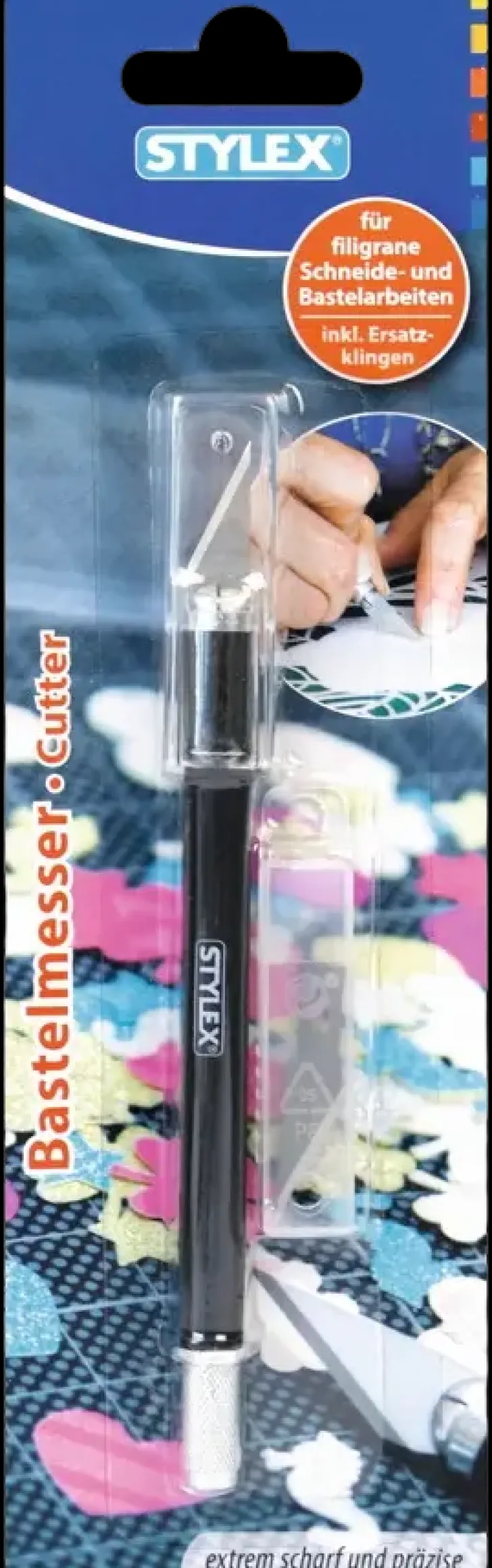 Erittäin Terävä Ja Tarkka Stylex Askarteluveitsi. Mukana 3 Varaterää. Terä Suojattu Korkilla. 2 Värin Lajitelma.