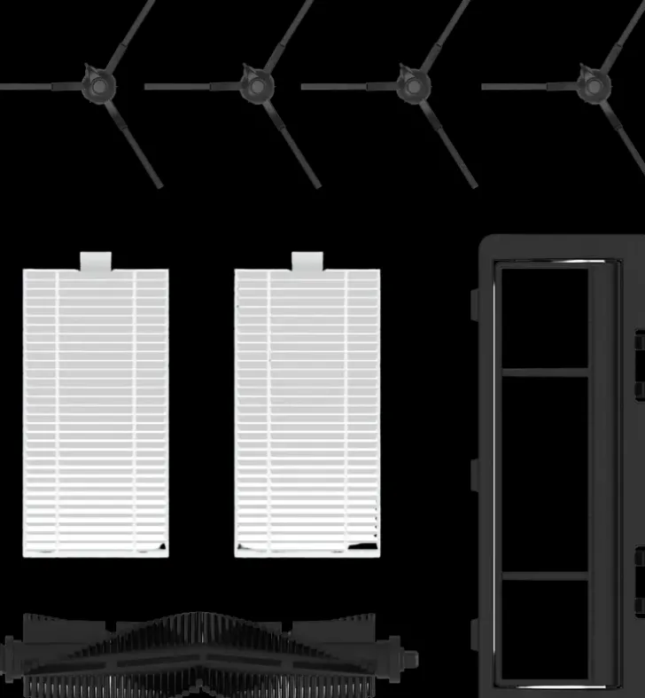 Lisätarvikepakkaus Tcl Sweeva 6000 Ja 6500 Robotti-Imureihin. Sisältää 4 Sivuharjaa, Yhden Pyöröharjan, Kaksi Suodatinta Ja Yhden Suodatinkehikon.