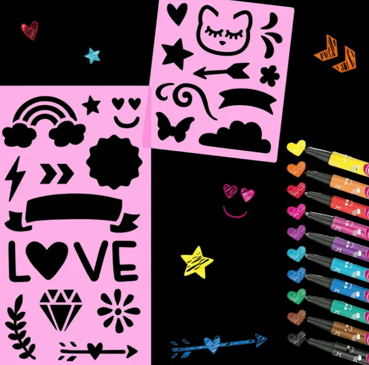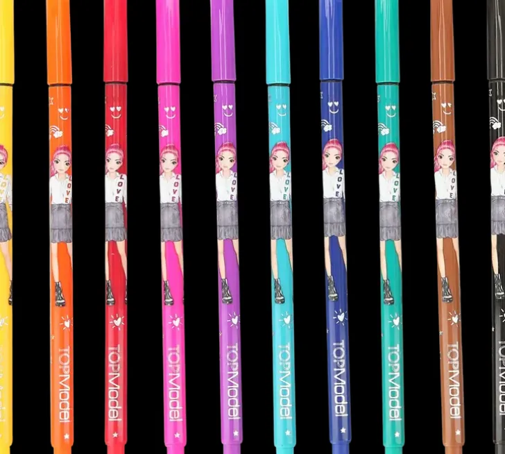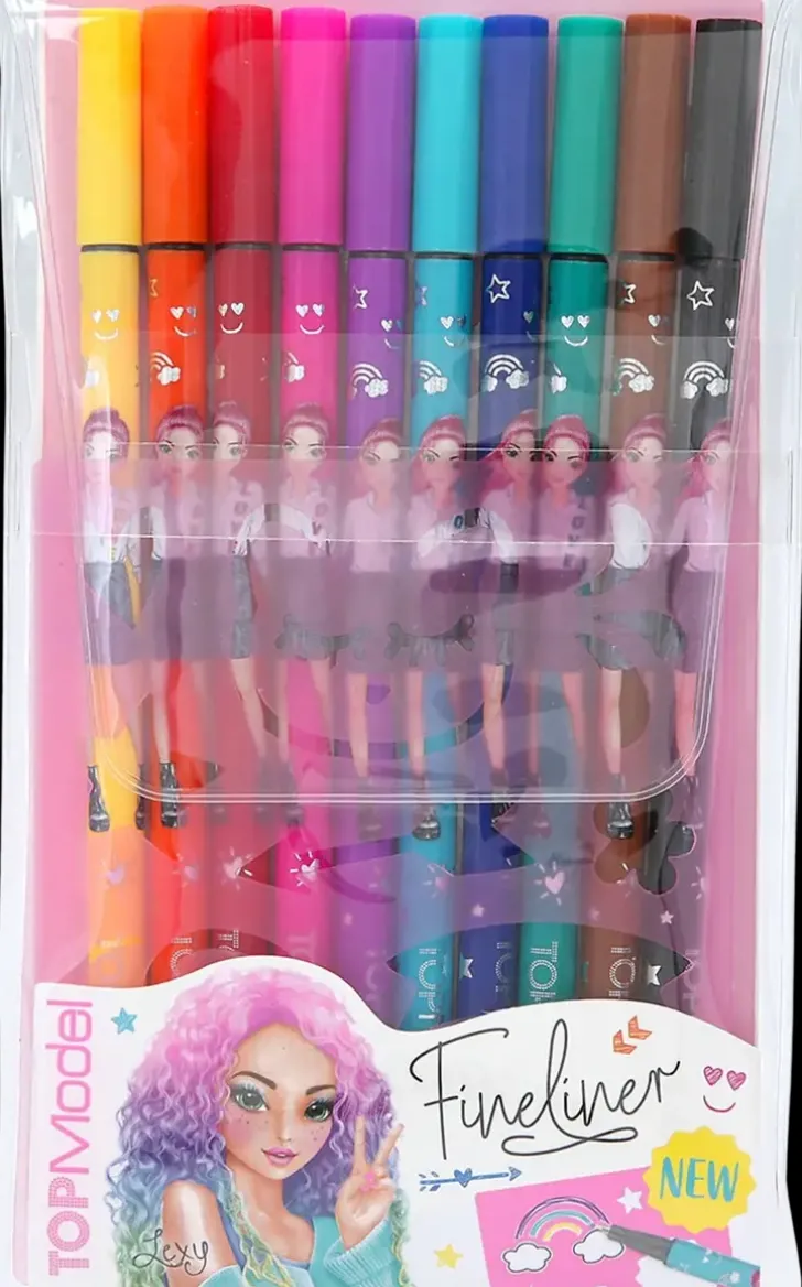 Ohutkärkiset Tussit Tarkkaan Työskentelyyn, 10 Väriä. Sisältää Kaksi Kuviosapluunaa.