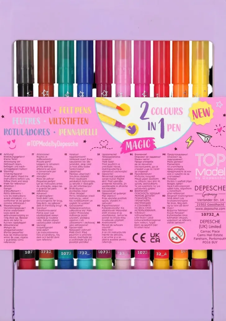 Pakkauksessa Mukana 10 Eriväristä, Kaksipäistä Tussia: Yhdellä Päällä Värität Ja Toisella Loihdit Esiin Uuden Värin! Kynät On Pakattu Kätevään Pystytelineeseen, Jossa Ne Pysyvät Hyvässä Järjestyksessä. Psst! Nämä Kynät Ovat Täyttä Taikuutta…