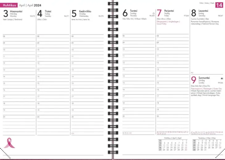Vuosikalenteri Roosa Nauha A5 2024
