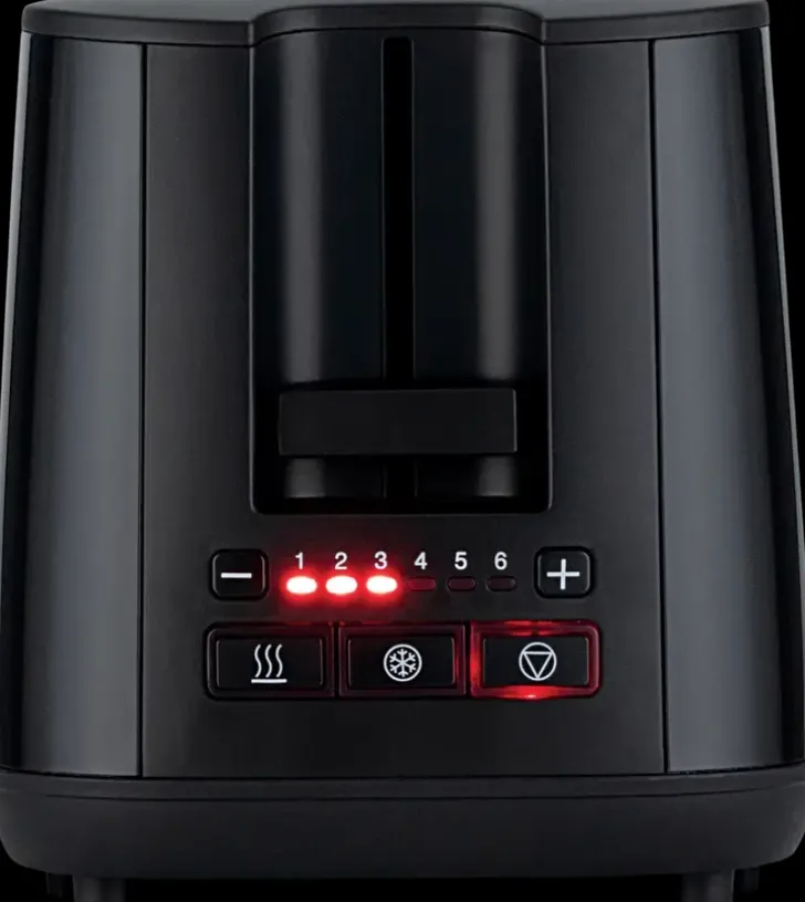 Wilfa Breakfast To3Gb-1000 Kiiltävän Musta Leivänpaahdin On Kompakti Ja Tyylikäs Leivänpaahdin Pohjoismaisella Muotoilulla. Paahda Leipäsi Tyylikkäästi Ja Nauti Täydellisistä Ja Tasaisesti Paahdetuista Leipäviipaleista – Juuri Sellaisina Kuin Haluat. Säädettävät Asetukset Antavat Sinulle Monia Vaihtoehtoja Paahtaa Leipäsi Juuri Niin Kuin Haluat. 6 Eri Paahtoastetta. Valitse Kuudesta Eri Paahtoasteesta, Jotta Leipäsi Valmistuu Täydellisesti Joka Kerta. Valitse Digitaalisesti Haluamasi Paahtoaste + Ja – Painikkeilla Kuudesta Eri Vaihtoehdosta. Helppokäyttöinen. Leivänpaahdin On Erittäin Helppokäyttöinen Ja Siinä On Painikkeet Pysäyttämiseen, Sulatukseen Ja Uudelleenlämmitykseen. Paina Haluttua Toimintopainiketta Ja Valitun Asetuksen Merkkivalo Syttyy. Murualusta. Irrotettavan Murutarjottimen Avulla Leivänpaahdin Puhdistaa Nopeasti Ja Helposti Ylijääneistä Muruista. 5 Vuoden Takuu. Tuotteillamme On Aina 5 Vuoden Takuu, Joten Voit Luottaa Siihen, Että Nautit Tästä Tuotteesta Pitkään. Teho 1000W. Paahtaa 2 Leipää Kerralla. 6 Eri Paahtoastetta. Helppo Käyttää. Sulatus- Ja Uudelleenlämmitystoiminnot. Irrotettava Murualusta. Takuu 5 Vuotta.