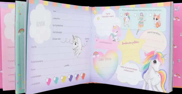 Ylvi-Ystäväkirjaan Keräät Kaikki Tärkeät Tiedot Parhaimmista Kavereistasi Sekä Perheestäsi. Tämän Lisäksi Voit Testata Mitä Taikamaailman Hahmoa Muistutat, Saat Selville Yksisarvisnimesi Ja Paljon Muuta Hauskaa.